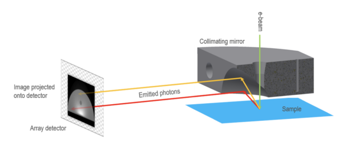 当光从抛物面镜焦 点处的样品发出时,它会沿反射镜的轴线向下反射。在数学上,抛物面形状是1对1的。因此,光在准直镜上的反射位置对于样品发出的角度也是wei一的。因此,对抛物面收集镜的背板进行成像,即可获取角度发射信息。使用已知的镜像形状,可以将数据转换为极坐标表示,以便解释说明。