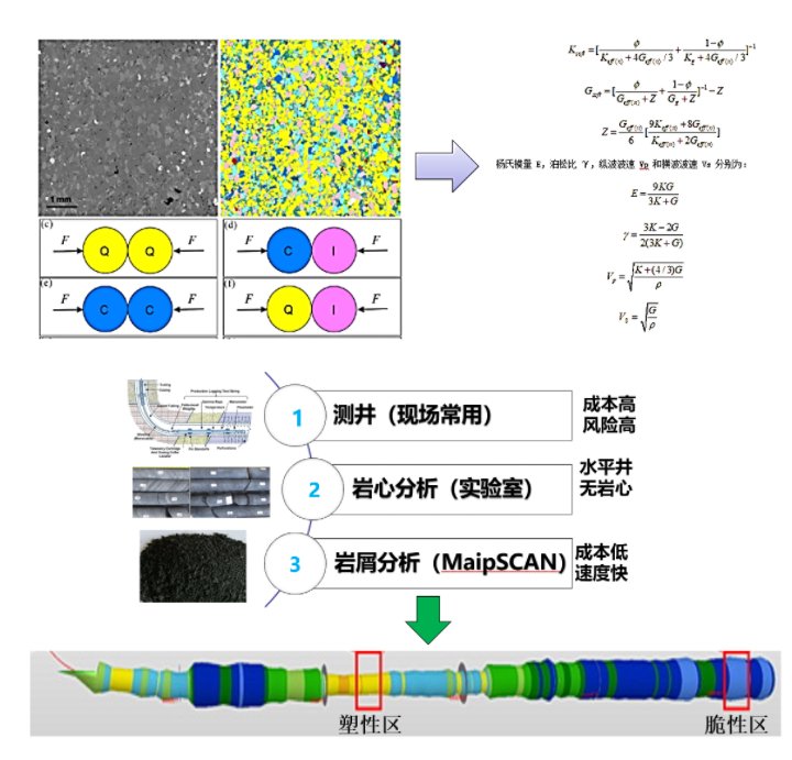 MaipSCAN可以通过分析现场岩屑微观结构和成分特征,经过科学缜密的数据算法,得到研究区的岩石力学参数,建立研究区地层岩石力学模型,可根据工况建立数字岩石模型并计算弹性参数,用于脆塑性分析。