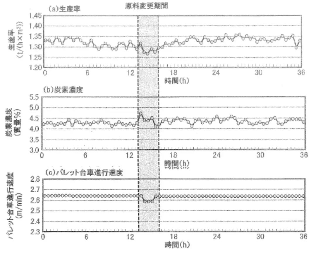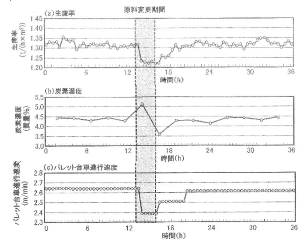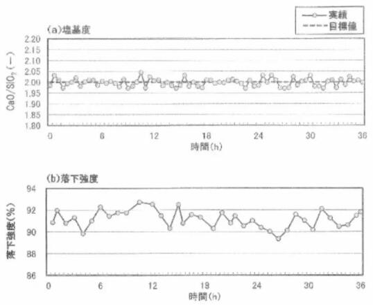 可以看到,即便在日本成熟的钢厂中,设定碱度值为2的情况下,实际生产的碱度值也有着大幅度波动;而所得烧结矿质量(落下强度)也有着很大波动,且质量偏低,普遍低于90。