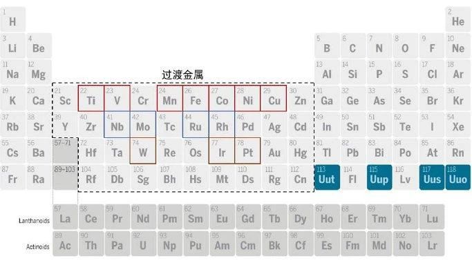 在元素周期表中,理论上能够匹配锂形成LiMO2型材料的元素主要包括第四周期3d类(下图红框)、第五周期4d类(下图蓝框)、第六周期5d类(下图棕框),但4d与5d类金属主要为贵金属或重金属,3d类中钒有毒、钛铁铜的复合氧化物因结构不稳定可逆性太差,实用性低。因此综合来看,Co、Ni、Mn等是合适的能够形成 LiMO2型材料的过渡金属