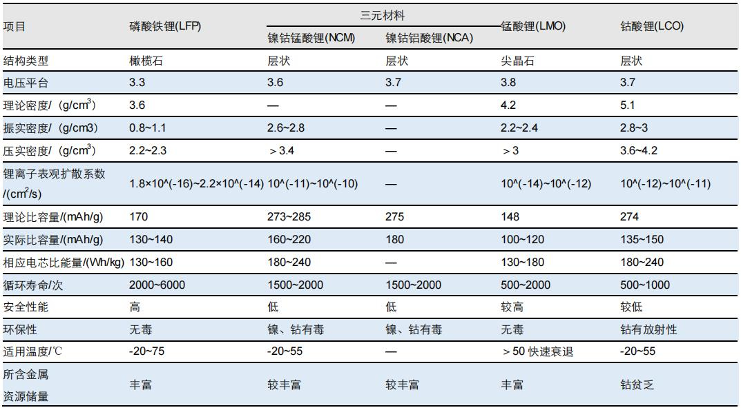 钴酸锂 LiCoO2(LCO)因具有较高的能量密度而首先广泛应用于数码领域,产业成熟度相对较高使其在电动车上得到较快的转换应用。但高电压下更多的锂离子从晶体结构中脱出,但锂的大量脱出会因为结构的破坏而影响电池的循环性能和安全性能。安全性差、寿命短且成本高的劣势限制其在动力电池领域的应用。(备注1:1981 年,Goodenough等提出层 LiCoO2 材料可以用作锂离子电池的正极材料。1983 年,Thackeray 等发现 LiMnO4 尖晶石是优良的正极材料。1991 年,Sony公司率先解决了已有材料的集成技术,推出了早期商业化锂离子电池,他们采用的体系是以无序非石墨化石油焦炭为负极,LiCoO2 为正极,LiPF6 溶于碳酸丙烯酯(PC)和乙烯碳酸酯(EC)为电解液。)