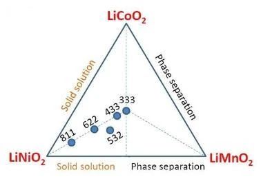 图4 镍钴锰酸锂(LiNixCoyMn1-x-yO2)分子结构式配比图