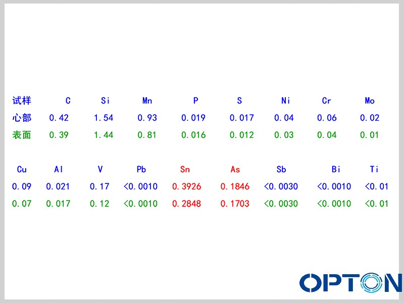 五害元素Sn As严重偏高,其它如Si、Mn、P、S、Al、V等元素心部的含量也高于表面含量,心部存在明显的成分偏析40SiMnV