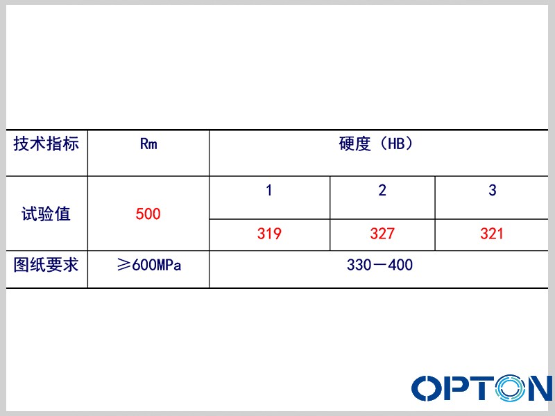 在1/2半径部位取样试验,结果表明:抗拉强度和硬度试验结果均低于技术指标