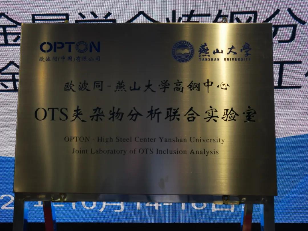 2021年10月14日,欧波同-燕山大学高钢中心OTS夹杂物分析联合实验室在“第九届高 品 质钢研讨会”主会场正式揭牌,这是欧波同集团(以下简称欧波同)与燕山大学高品质钢铁材料制备与应用研究中心(以下简称高钢中心)建立长期合作的开端,双方将展开优势联合,开发科研创新项目,推进钢铁行业绿色智能、高效改革。