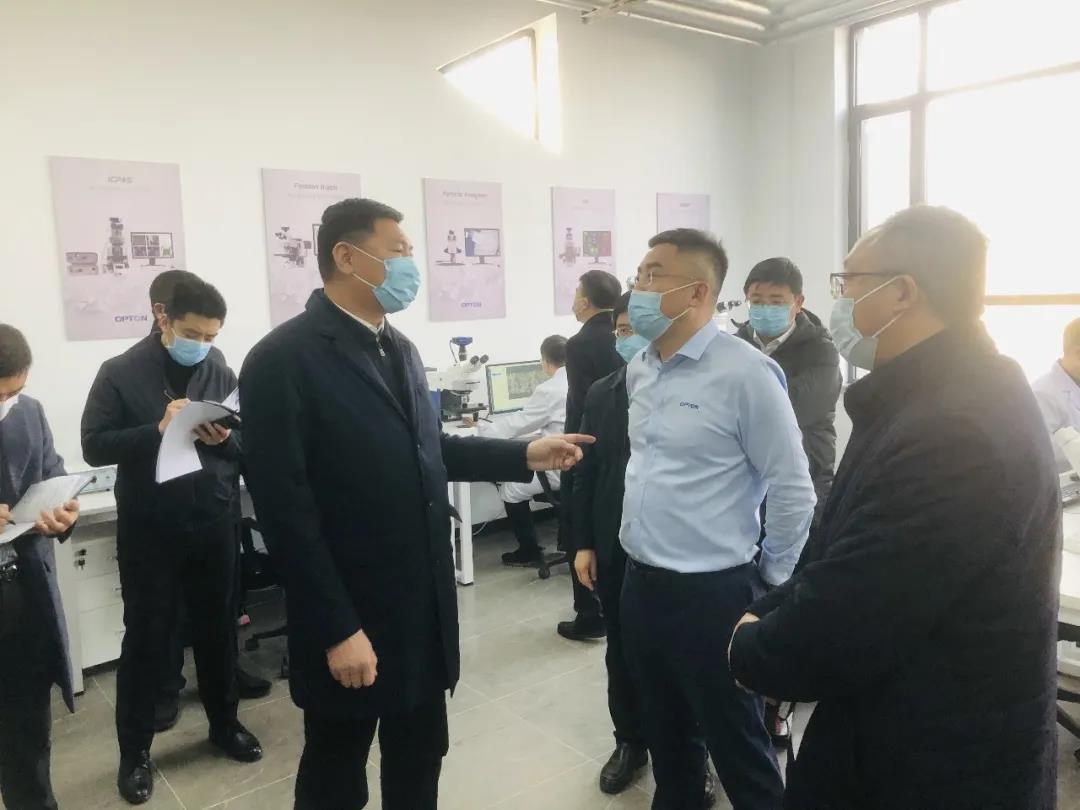 11月19日下午,辽宁省鞍山市市长王忠昆、副市长孙平、市政府秘书长金峰、鞍山高新技术产业开发区党工委书记、管委会主任郑思南一行莅临欧波同集团总部,在欧波同集团副总经理张国滨的陪同下参观考察了欧波同总部基地及材料分析实验中心,并听取了关于人工智 能 AI 图像分析系统研发项目的介绍。