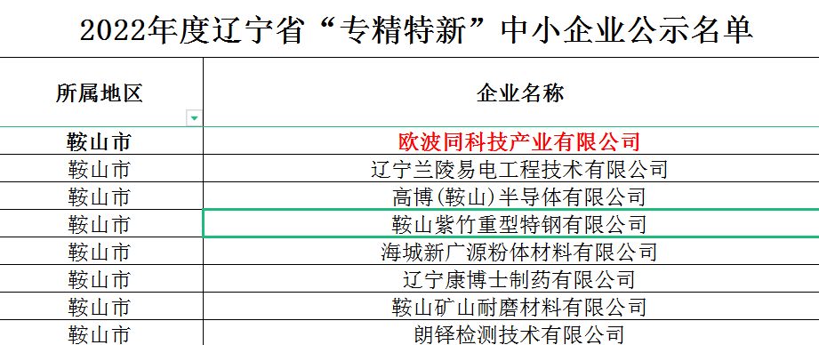 企业动态 | 欧波同科技产业有限公司入选2022年辽宁省“专精特新”中小企业