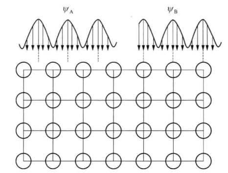 再进一步探索为什么电子束在扫描角度大于θb时形成的背散射电子数量较少,而在角度小于θb时形成的背散射电子数量较多呢?这可以用双光束近似模型来解释,见图2。在晶体中运动的电子行为可以用两个Bloch波来描述。这两个平面波均受晶格的周期性调制,其中一个波为通道波ΨA,其ZUI大振幅在晶体中两个原子对应的平面中间的位置,发生电子背散射现象的几率较小;另一个波为散射波ΨB,其ZUI大振幅在原子对应平面上,发生电子背散射的几率较大。