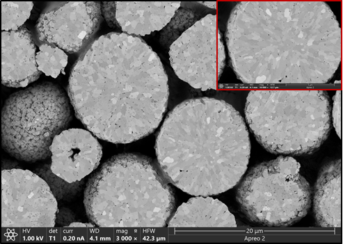 图4 锂离子电池三元正极材料的粉末颗粒截面的通道效应衬度像
