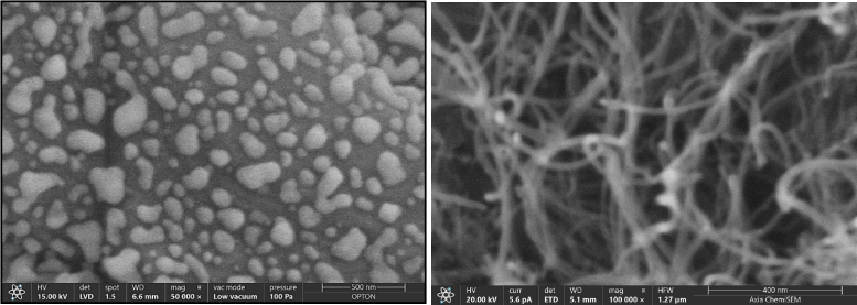 图11(左) VP模式 100Pa 50K X,(右)碳纳米管 100K X
