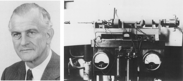 图1 (左图)J. B. Le Poole博士,荷兰电子显微镜创始人(右图)代尔夫特电子显微镜,1941年4月