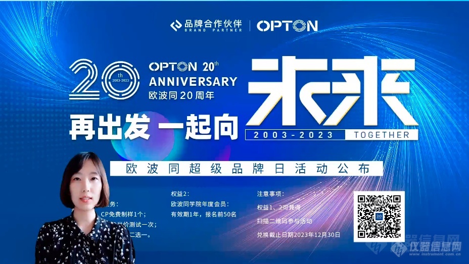 6月26日,欧波同携手仪器信息网以“二十周年再出发,一起向未来”为主题共同举办欧波同超级品牌日活动,本次活动将以会前会的形式于第九届电子显微学网络会议(iCEM 2023)同期举行。欧波同集团成立于2003年,是一家材料分析数字化解决方案服务商,旗下拥有科学仪器、智慧实验室、第三方检测、技术服务等业务板块。在充满机遇与挑战的2023年,欧波同人也迎来了第20个年头,让我们共同见证欧波同创业路上的光荣和梦想!