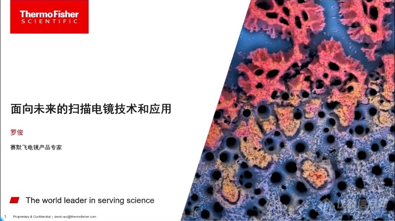 罗俊介绍了扫描电镜技术的六大发展趋势,包括不同信号的解析能力、高分辨成像和分析能力的有机结合、集成化EDS元素分析(实时元素分析)、实时在线人工智能图像自动采集和数据分析、原位动态实验功能以及无线可能的拓展能力,并以锂电池隔膜、锂电池极片胶黏剂、不导电样品、晶体缺陷等分析案例介绍了赛默飞电镜在不同样品分析中的应用。
