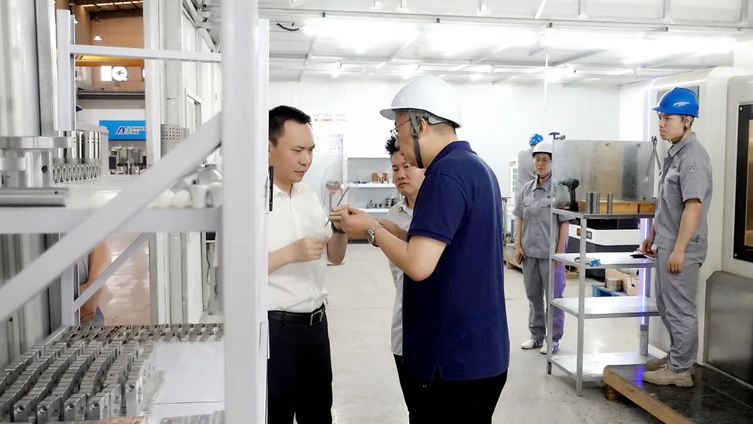 考察期间,吴开华市长一行参观了公司的研发中心、生产车间和加工中心。在这里,自动化生产线正在高效运转,每一条产线都配备了智能控制系统,高度智能化的设备和精准的操作流程,使整个生产工作显得井然有序、精准无误。