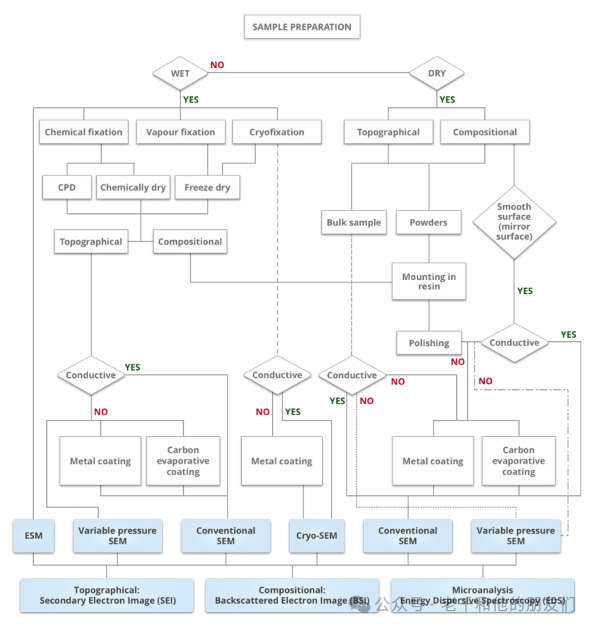 首先因为观察的对象不同,有生物样品,也有材料样品,因此,并非所有SEM都使用相同的样品制备顺序。此外,SEM的具体步骤取也决于具体的设备类型,以下是一些常规的流程和注意事项,旨在简单阐述制备样品的过程。