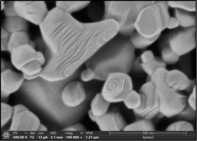 图2: 烧结助剂Y2O3粉体的微观结构,(上)二次球结构,(下)一次颗粒的微观结构