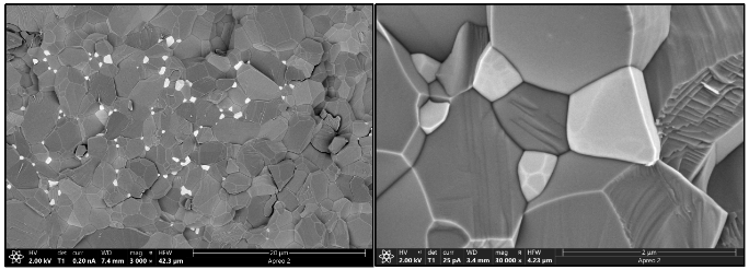 图3:烧结成型的AlN陶瓷微观结构(其中白色颗粒为烧结助剂Y2O3)